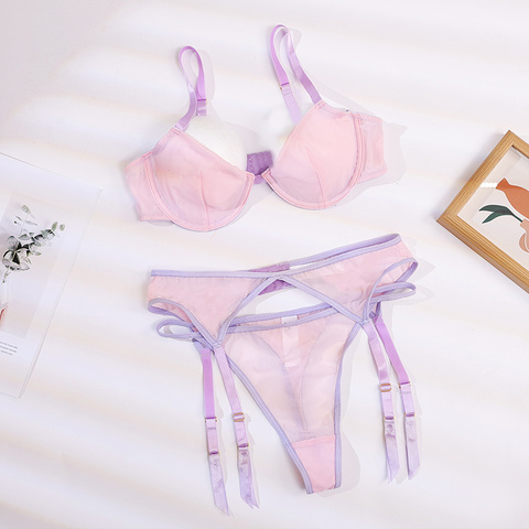 ファッションセクシーなブラジャー女性のブラジャーセットODM OEM工場カスタマイズランジェリーメッシュピンク下着