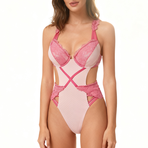 ODM OEM Mới Nhất Thiết Kế Của Phụ Nữ Bộ Đồ Ngủ Tinh Tế Màu Hồng Lưới Áo Ngủ Thân Thiết Cảm Ứng Đêm Ăn Mặc